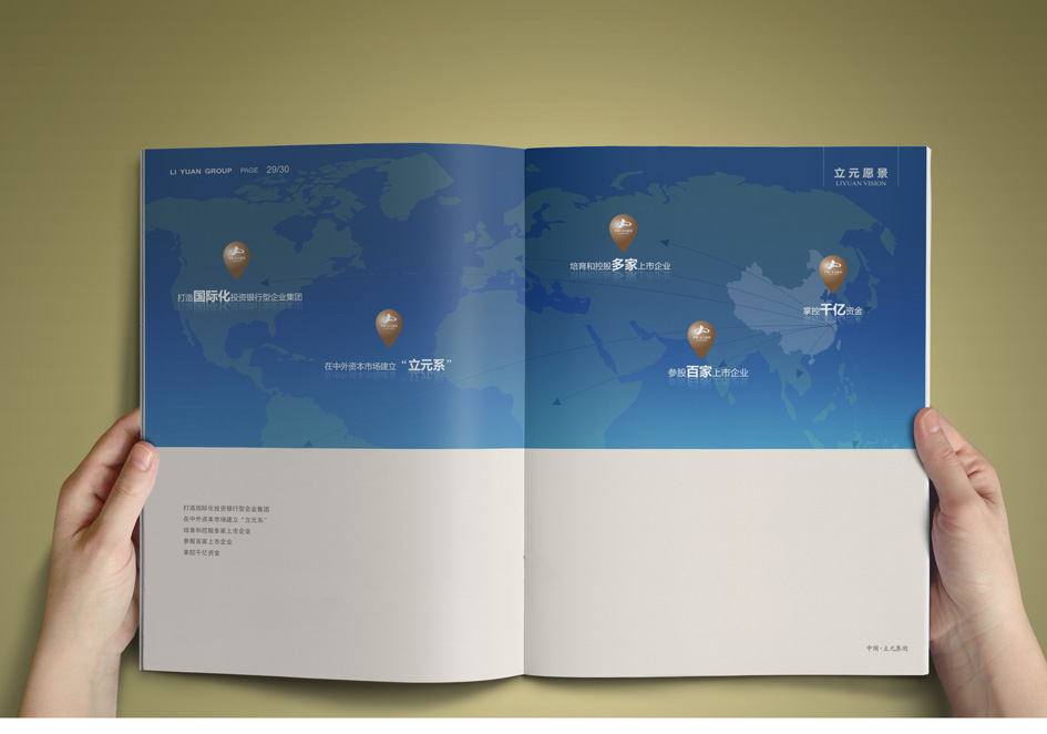 立元集團創建于1998年,旗下擁有20多家控股企業,參股近百家上市、擬上市企業,近千名員工,業務涵蓋各類金融投資、房地產開發、電子通信三大板塊。銘陽廣告公司先后為其提供集團宣傳冊設計、團隊攝影、資本投資畫冊設計、員工手冊設計制作、物業公司宣傳設計、大型主題會議設計、PPT設計等。